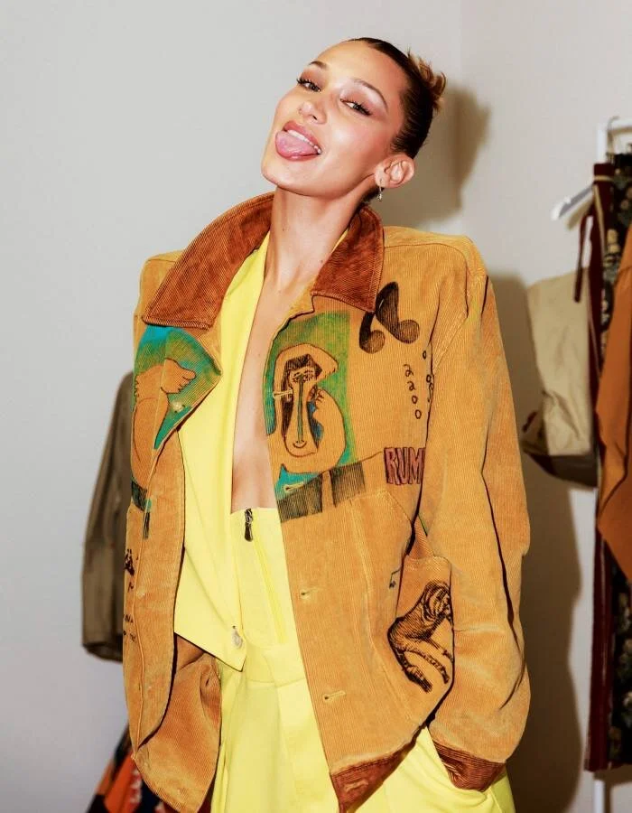 Bella Hadid wearing Bode Senior Cord Project Jacket